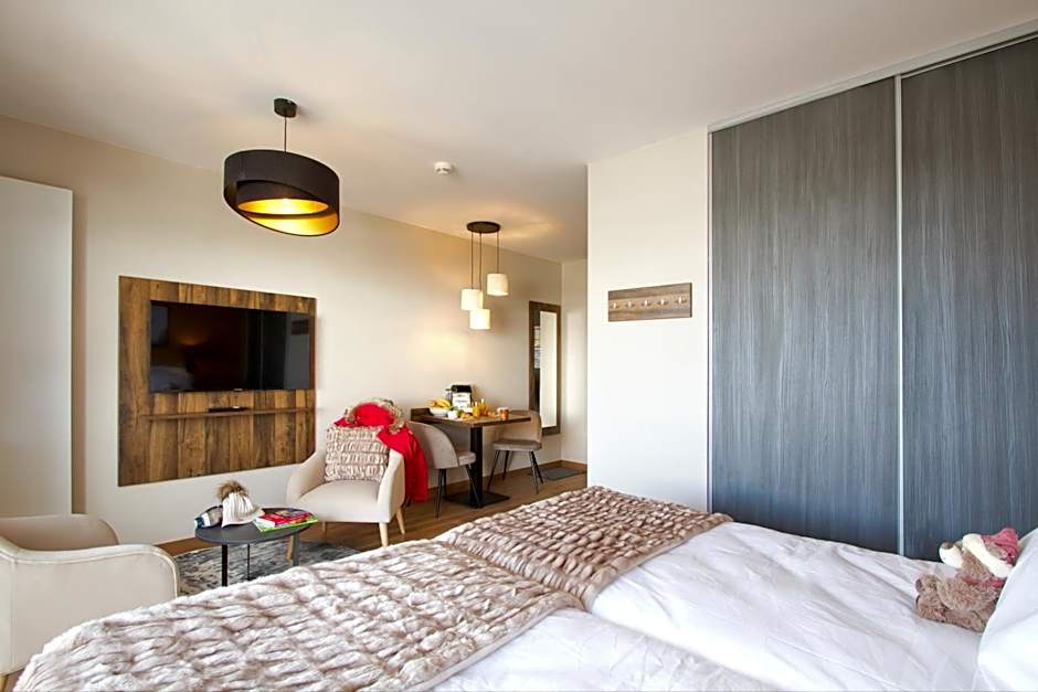 Junior suite for 4 people is 344 square feet and includes a double bed 131-150 width plus balcony, safe, bathrobes, and slippers and is Wheelchair-accessible.